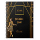 Elegant faux gold and glam for a 1920's style, themed notebook, diary. An art deco style notebook in faux gold and black. Decorated with a 1920's style flapper girl and an art deco style frame. Templates for a year, text and a name.