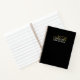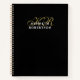 Personalized elegant stylish refined spiral notebook, customizable personalizable with monogram, initial letters and name. Neutral black monochrome monochromatic manly background, elegant gold calligraphy script handwritten initial letters, and classy white typography for the name. Beautiful and timeless, for you or as a thoughtful custom useful gift idea for him. Suitable for a gentleman and very affordable, a gift under 25 dollars in softcover version. Versatile design, to use at home, at home office, business professional, even at school, college, university. Could be a gift for a friend, a family member, a coworker or boss, a colleague, a groomsman.