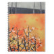 Un tableau paysager de la floraison de l'épine noire au printemps sur un arrière - plan de corail orange.