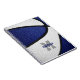 Ce carnet en spirale de basket sportif comporte un basketball simple et abstrait surdimensionné avec des panneaux recolorés bleu et blanc - nom de l'athlète et monogramme, lettre de variété ou numéro de maillot sont personnalisables en coordination bleu et gris - par katz_d_zynes