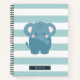 Ce carnet mignon et simple présente un éléphant et votre nom sur un bloc bleu marine sur un arrière - plan blanc aux rayures bleu turquoise clair. Personnalisez-le selon vos besoins. Vous pouvez trouver des produits correspondants dans mon magasin.