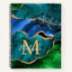 Ce carnet dispose d'un élégant et glamour arrière - plan en marbre d'agate bleu et vert avec des accents de parties scintillant faux or. Le monogramme combine écriture manuscrite et polices sans serif modernes pour un look élégant et sophistiqué. Cela fera le cadeau idéal car il peut être customisé avec un nom et une initiale. Les paillettes et la texture en mauvais état créent un mélange parfait de chic et de grunge.