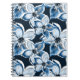 Carnet Bleu, fleurs blanches sur un arrière - plan noir.