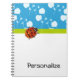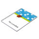 Personnalisez en ajoutant votre nom à ce motif floral bleu et blanc à la mode avec une rayure verte et une coccinelle à tache rouge mignonne.