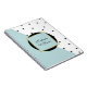 Un mélange de bleu pastel poussiéreux et de motif pois noir et blanc chic donne à ce carnet personnalisé un style frais et attrayant. Une entrée de cadre au centre de la conception combine un cadre double géométrique avec un arrière - plan circulaire noir pour personnaliser avec votre nom ou tout autre texte souhaité.