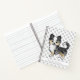 Illustration originale de Destei d'un chien de race Chihuahua vêtu d'un manteau bleu de merle. Sous le chien il y a une zone de texte personnalisable pour le titre du carnet. L'arrière - plan a un motif d'empreintes de pattes de chien gris.