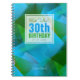 Beau arrière - plan abstrait (aqua, turquoise, carrés transparents de couleur verte) avec un tag carré blanc semi-transparent (minuscule bordure transparente) pour nom, date et anniversaire. Tout est personnalisable pour ce livre d'or de 30 ans.