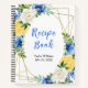 This beautiful and elegant recipe book features watercolor blue, yellow and white flowers with foliage on a gold geometric frame. The text combines handwritten script and serif fonts for a stylish and modern look. This makes a great wedding or bridal shower gift, a gift for someone special or for your own use in your kitchen.
