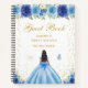 Cet élégant et glamour livre d'hôtes en sweet sixteen présente une belle princesse aux cheveux foncés et à la peau foncée en robe bleue. Le texte combine écriture manuscrite et polices sans serif modernes pour un look élégant et sophistiqué. Les compositions florales, les papillons et les confettis d'or créent un mélange parfait de rustique et de chic. Graphiques par www.etsy.com/uk/shop/SunflowerDayLove