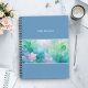 Elevate your note-taking with this elegant personalized notebook featuring a dreamy, watercolor floral illustration in shades of sea foam green, soft teal, and lavender. Perfect for journaling, school, or office notes, this notebook can be customized with your name for a thoughtful gift or a stylish personal accessory.