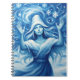 This whimsical notebook features an ethereal blue winter goddess illustration: flowing hair, fur-trimmed hat and raised arms conjure swirling snowflakes across a moonlit, dreamy snowy landscape. Finished as an oil acrylic paint print.