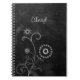 Carnet de style bohème noir et blanc avec craie florale blanche dessinée d'une bouffée de dandelion et d'autres fleurs sauvages avec des tourbillons de fée contre un arrière - plan de style ardoise de tableau noir. Personnalisez ce joli tableau en ajoutant votre nom.