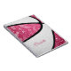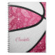 Ce mignon carnet à thème de basket présente l'image réaliste d'un ballon de basket abstrait surdimensionné qui a recoloré alternant des panneaux rose et blanc avec de délicates fleurs de doodle dessinées à la main, des plumes et des paislies modelées sur les panneaux roses du basket - personnaliser avec le nom de l'athlète - par katz_d_zynes