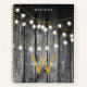 Un arrière - plan rustique en bois noir grange avec des lampes à cordes dorées suspendues avec monogramme or assorti. Un bois brûlé rustique de campagne avec une touche de glamour doré. Customisez le monogramme et faites-le vous-même. Un beau livre de recettes qui peut être customisé avec votre texte et votre monogramme. Personnalisez le titre et la conception de papier intérieur pour en faire un livre complètement différent.