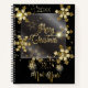 Conception de Luxe - Voeux de Joyeux Noël et Bonne Année 20XX ! Carte de voeux décorée avec des personnages dorés magiques de Noël, motif d'éléments de cadeaux de vacances d'hiver, bonhomme de neige, Père Noël, arbre de Noël, boule de Noël, rennes, flocons de neige, étoiles de Noël, cadeaux et autres symboles festifs. Conception graphique originale tendance pour le bureau et l'école > Papeterie > Cahiers et blocs-notes > Cahiers et journaux, papier blanc et noir élégant avec modèle de texte. Personnalisez-les en ajoutant votre texte de voeux, décoration graphique festive pailletée sur les deux côtés 2025. Idée de cadeau parfaite