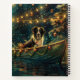 Jetez un coup d'oeil à la magie de la saison des Fêtes avec cette illustration magnifiquement détaillée, montrant un chien fier assis dans un bateau à la décoration festive, glissant à travers un lac serein de Noël. Les lumières scintillantes des pins voisins se reflètent dans l'eau, projetant une lumière chaude et festive qui renforce l'ambiance cosy. Des ornements pendent des côtés du bateau, tandis que des lanternes brillantes éclairent le chemin, créant une scène qui capture l'essence véritable de la chaleur et de la joie de Noël. Cette oeuvre nostalgique apporte une touche de magie de vacances à tout espace, parfait pour ceux qui chérissent l'esprit de la saison.