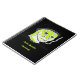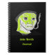 Carnet à spirale personnalisable avec l'image d'une poupée en bois de style martien vert sur un arrière - plan noir. Nom et étiquette personnalisable. Pour les étudiants de tous âges, K-12, collège; aussi pour l'entreprise et l'usage personnel.