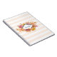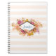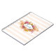 Un carnet en spirale avec un arrangement floral orange et rose avec des feuilles verts. Un cadre en forme de losange superposé avec votre nom personnalisé à l'intérieur.