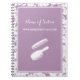 Prenez des notes pour votre salon de coiffure avec ce carnet moderne de beauté fleurie violet et blanche ceinturée d'une brosse et logo peigne. Personnalisez en ajoutant le nom de votre salon et votre site Web à ce joli design de fleurs violettes lavande.