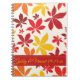 Customisez le Carnet Spiral Mariage de Bright Fall Leaves avec les noms personnels de la mariée et du marié et date pour créer un planificateur unique, un livre de conseils ou un livre d'invité pour une cérémonie de mariage saisonnière d'automne septembre, octobre ou novembre. Ce livre de notes mariage customisé à l'automne comporte des feuilles d'automne parsemées de rouge, d'orange et de jaune avec un arrière - plan blanc.