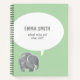 Un éléphant gris mignon avec une simple bulle de texte blanche sourit sur un fond vert clair et herbeux. Personnalisez le texte pour faire de ce cahier un produit adapté aux enfants, parfait pour l'école ou la maison. N'oubliez pas d'ajouter vos coordonnées au cas où le cahier se perdrait quelque part.