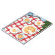 Charmant et confortable brunch du dimanche avec des amis. Table de café plat avec gâteau bundt et cappuccino café pour deux sur une table avec un tissu de table rouge & blanc à damiers. Le sol est recouvert de carrelage plante de Monstera et de carrelage espagnol traditionnel. J'adorerais voir ce design dans la nature ; étiquetez-moi sur Instagram @parry_vegan