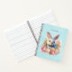Spiral notebook with a watercolor image. A white gray bunny rabbit surrounded by a garland of pink and peach roses. For bunny lovers and Easter themes and birthdays and showers.