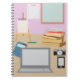 Un art vectoriel d'un bureau plein d'objets tels que caméra, téléphone portable, ordinateur portable, calculatrice, fournitures d'art, livres et calendrier.