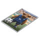 Photo en short et gilet avec un ballon de football, cette vache des Highlands est prête à jouer au football de ligue.