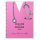 Cahier d'infirmière créatif avec des blouses d'hôpital roses, un stéthoscope et un couteau suisse. Pour personnaliser, modifiez le texte pour ajouter le nom et l'année.