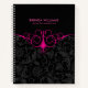 Élégant damas floral noir avec cadre tourbillonnant rose chaud