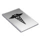 Insigne ou symbole Médicale le Caduceus, la baguette magique du dieu grec Hermes (Mercure), le dieu du commerce, de l'éloquence, de l'invention, du voyage et du vol, et ainsi était un symbole d'hérauts et du commerce, pas de la médecine. Malgré cela, ce symbole a été adopté par beaucoup dans le domaine de la médecine. Une tige courte entrelacée par deux serpents et surmontée d'une paire d'ailes