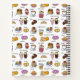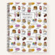 Motif sucré de gâteaux, desserts et café. Tous les types préférés de nourriture de confort illustrés sur un cahier de recettes personnalisé.