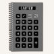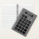 Calculatrice grise avec nom et clavier. Le nom sur l'écran de la calculatrice peut être modifié ou supprimé.