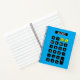 Calculatrice bleu Aqua avec nom et clavier. Le nom sur l'écran de la calculatrice peut être modifié ou supprimé.