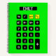 Calculette verte citron avec nom et clavier. Le nom sur l'écran de la calculatrice peut être modifié ou supprimé.