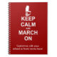 Nouvelle version de l'emblématique affiche britannique, ce design présente la fameuse phrase "Keep Calm and...", mais le termine par "March On". La référence de la bande de marche est encore renforcée par une illustration graphique d'un shako - l'emblématique casque des arts de la marche. Vous pouvez également personnaliser ce carnet unique avec votre propre message en utilisant le modèle facile et fourni.