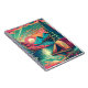 Camping carnet à thème. Les graphismes sont d'une scène de camping rose et turquoise vintage avec une tente, coucher de soleil, lac et pins.