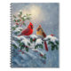 Une paire de cardinaux rouges du nord perchent sur une branche sainte recouverte de baies rouges et de neige.