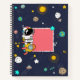 Graphique de clipart astronaute, Espace extra-atmosphérique : astronaute tenant ballon comme une planète, une fusée, étoiles, icône OVNI, icône satellite spatial, planète Saturne, vaisseau spatial, et d'autres. Sur Oxford Blue (bleu marine) arrière - plan.