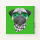 Ce design présente un portrait de carlin en verre et un foulard à damiers noir et blanc.