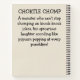 ChortleChomp, un monstre qui ne peut s'empêcher de croquer les blagues "toc-toc", son rire tonitruant ressemblant à des popcorns qui éclatent à chaque jeu de mots !