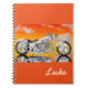 Carnet illustré avec une photo d'une moto à l'allure pointue et un nom personnalisé. Customisez cet objet et changez le nom à votre nom ou retirez le nom et achetez tel quel. Image stock