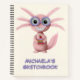 Carnet de croquis personnalisé mignon et amusant avec l'illustration d'un axolotl rose avec lunettes. Drôle dessin animé axolotl qui sera le plaisir de l'amant axolotl. Illustré et dessiné par Patricia Alvarez.