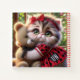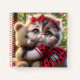Carnet Cat in Red Dress with Teddy Bear