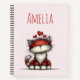 Spiral notebook with a whimsical drawing featuring a big orange red kitty cat.