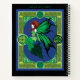 Une fée aux cheveux rouges tout en vert avec un noeud celtique vert travaillent tout autour.
