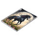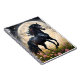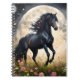 En Face D'Une Pleine lune Dans Un Champ Fleuri, On Voit Un Cheval Noir S'Élevant.