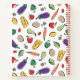 Carnet de recettes de charme avec un motif de fruits, légumes et fromage aux couleurs vives. Ajoutez votre nom sur un étiquette violet au-dessus de Recettes écrites dans un script écrit à la main.