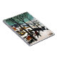 Carnet avec Pieter Bruegel, la peinture huile sur bois de l’Ancien Les Chasseurs dans la neige (1565). Un village drapé de neige accueille un groupe de chasseurs et de chiens. Les villageois patinent sur les lacs glacés. Un joyeux cadeau de Noël !